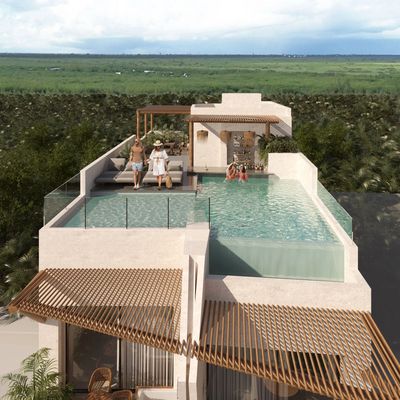 Located on the first street and south of the town plaza, Thea condos offer a great location just a few minutes from shopping and dining. This boutique building of just 12 units is brought to you by Tierra Santa, which previously completed Suyab and Turix in Puerto Morelos.